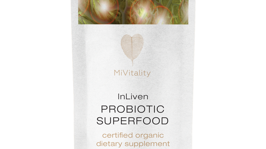 InLiven Superfood, based on more than 20 years of research, contains the complete Lactobacillus family of 13 strains combined with 26 certified organic whole foods naturally fermented for 3 weeks prior to bottling.